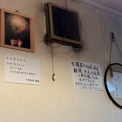 | 備考 | ラーメン定食 ¥1000円が看板メニュー。 ラーメン、ごはん、日替わりのおかず、冷奴、おしんこが付いてボリューム満点 |